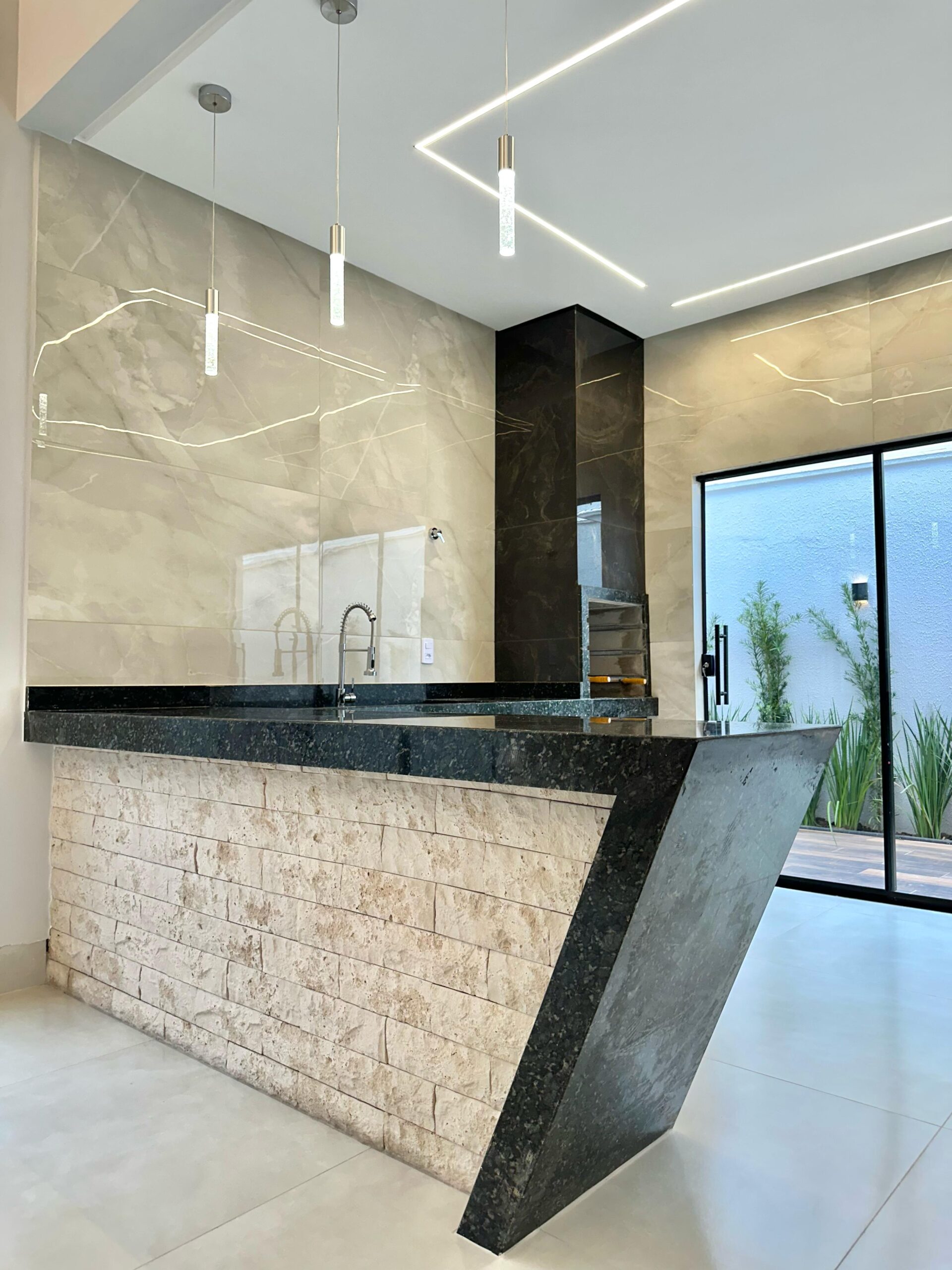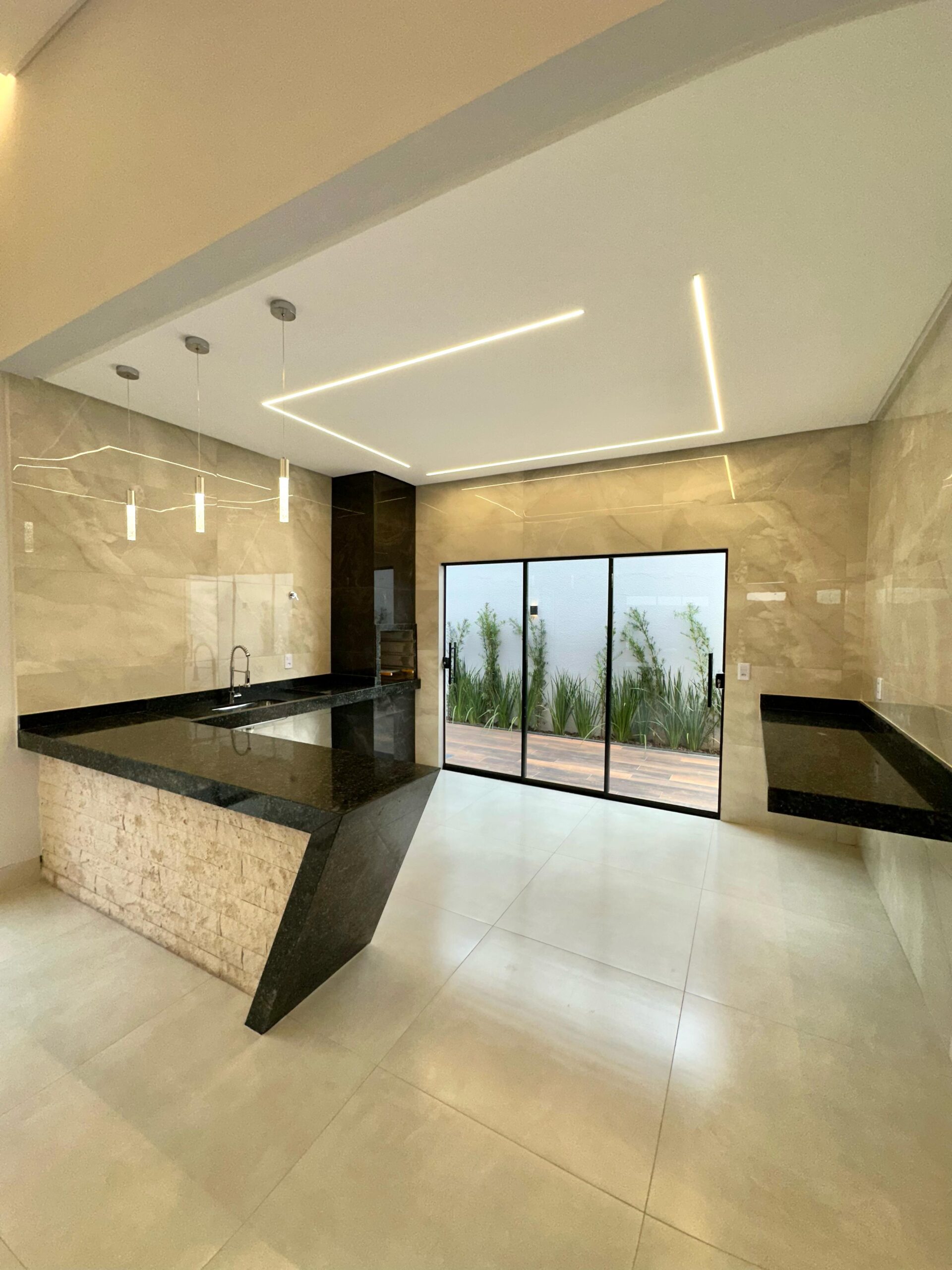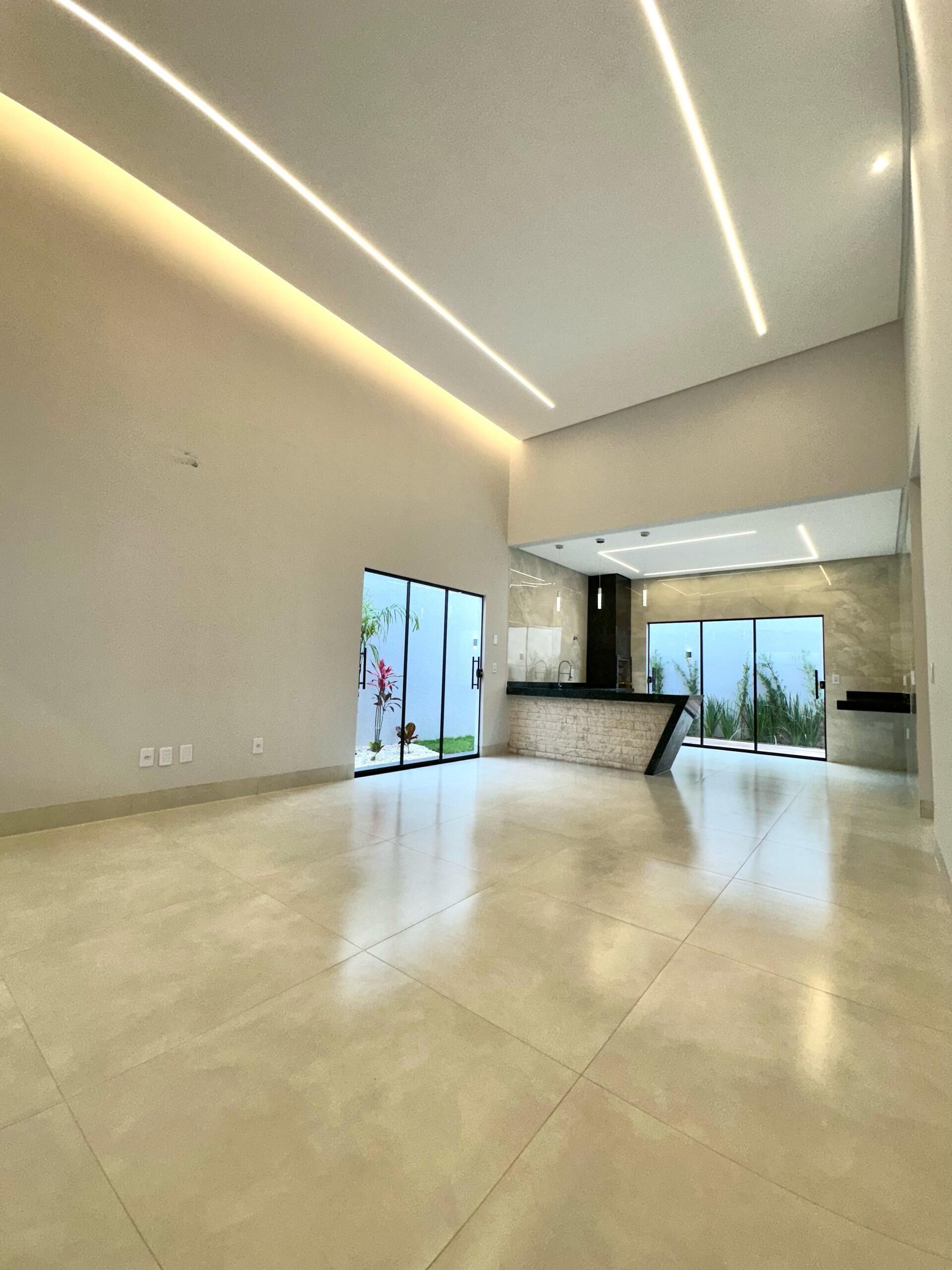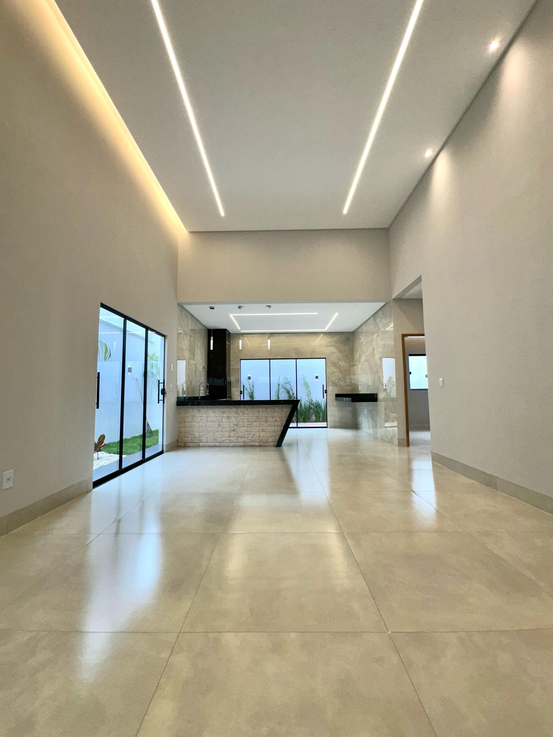 – Projeto luminotécnico completo, rica em perfis de LED, cortineiros iluminados, pendentes e arandelas