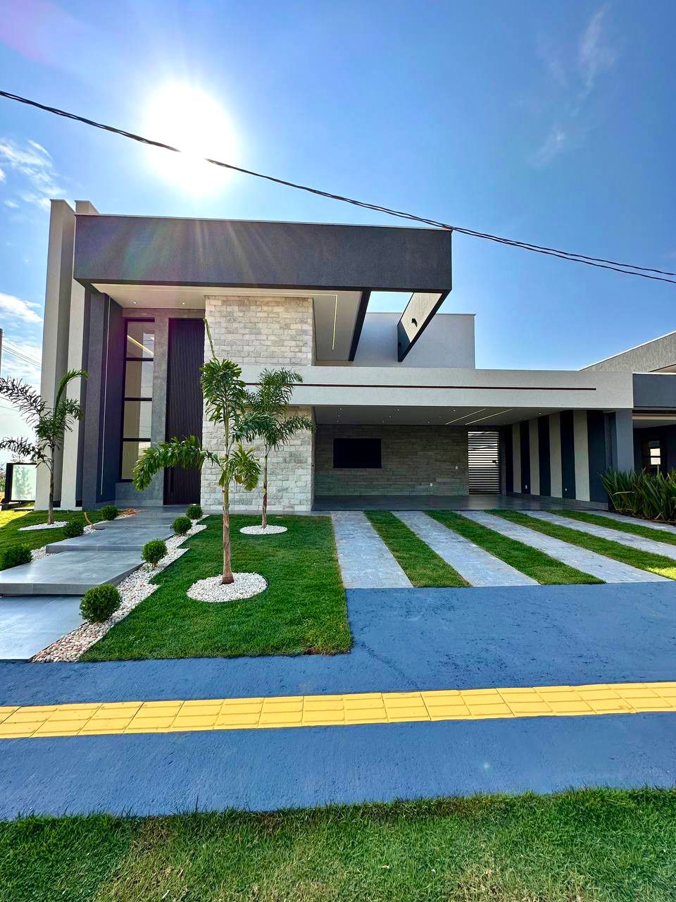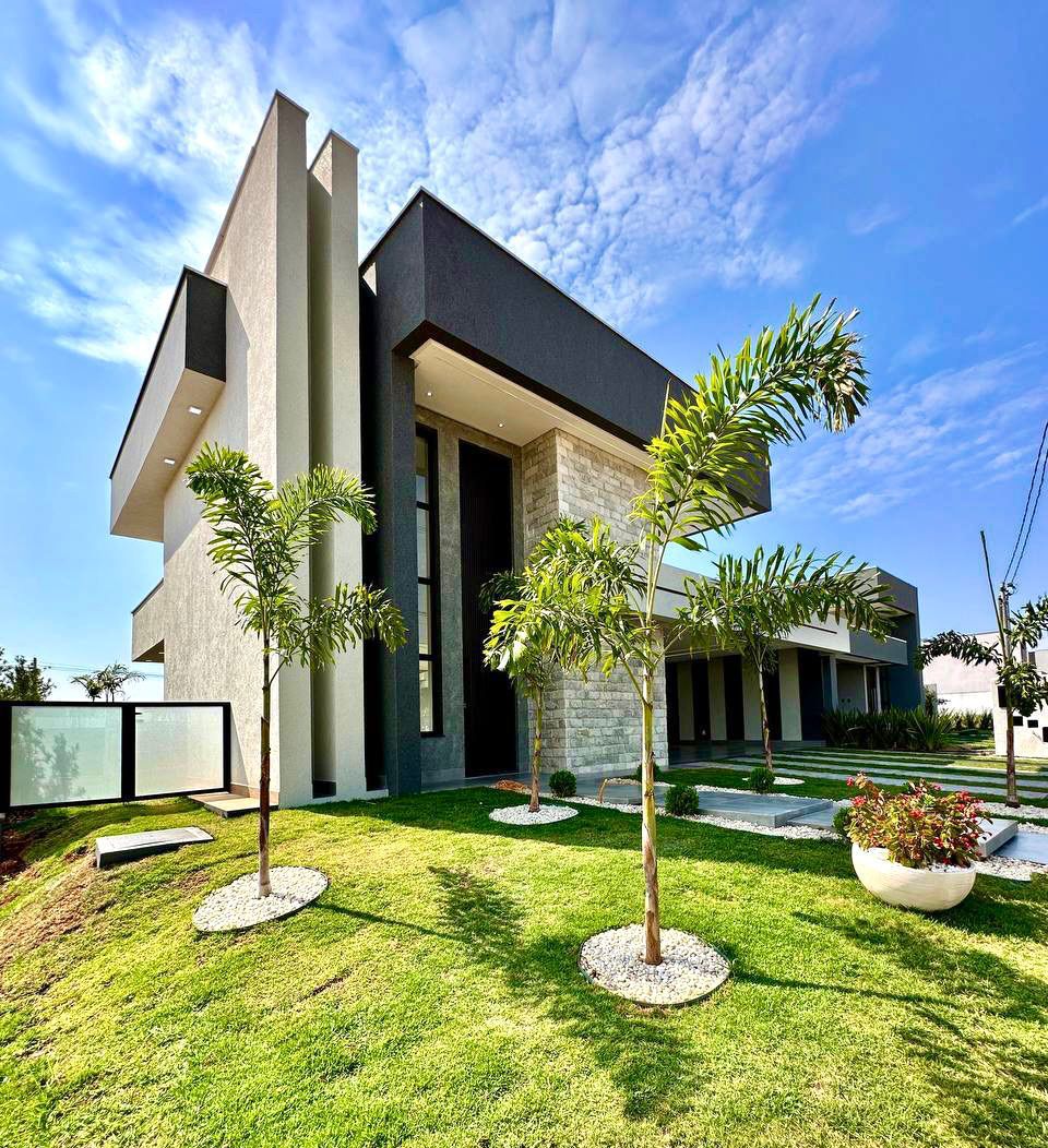 Residência de esquina, moderna e com fachada imponente, se destacando como uma das que mais bonitas de todo o condomínio.