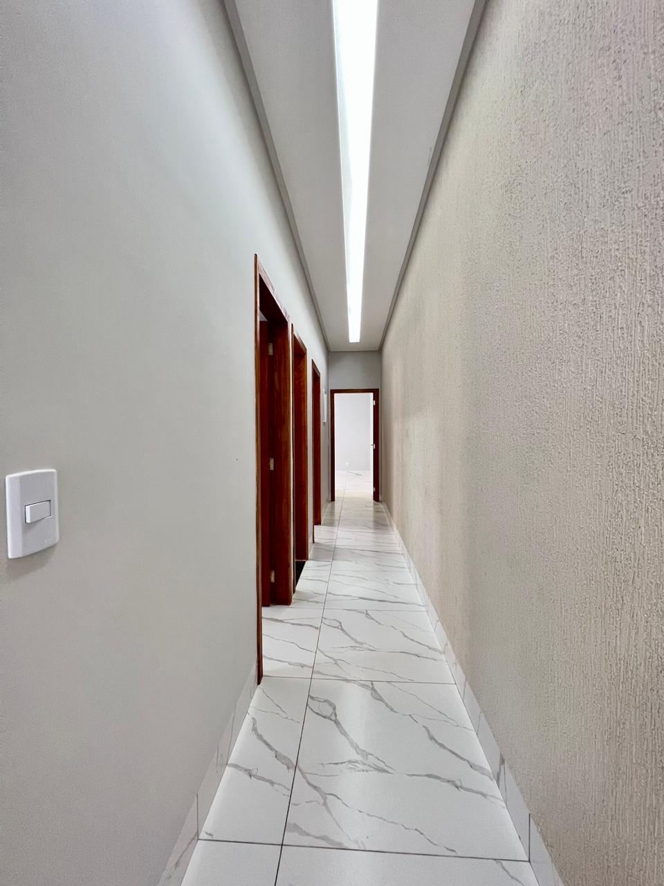 A residência está completa em iluminação e trabalhos em gesso, pontos para ar condicionado nos quartos e sala, paisagismo na frente e nos corredores.